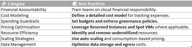 While cost optimization is essential, it must be balanced with performance, availability, security, and operational efficiency.