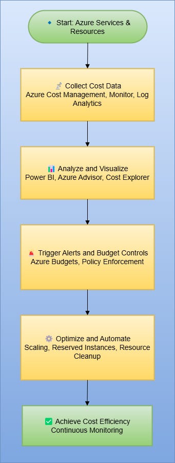 📌An Azure architecture diagram showing cost monitoring tools in action.